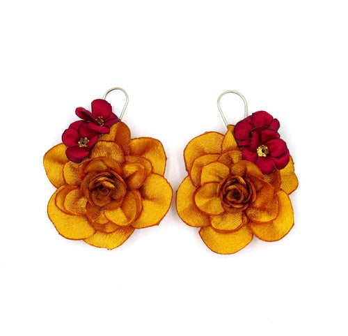 Aros botón camelia colgantes jaspeados