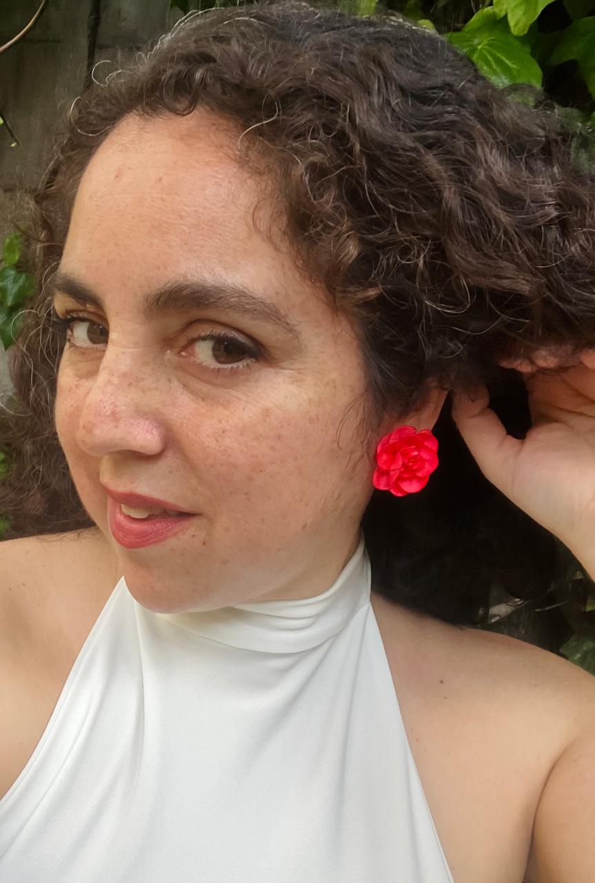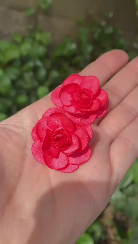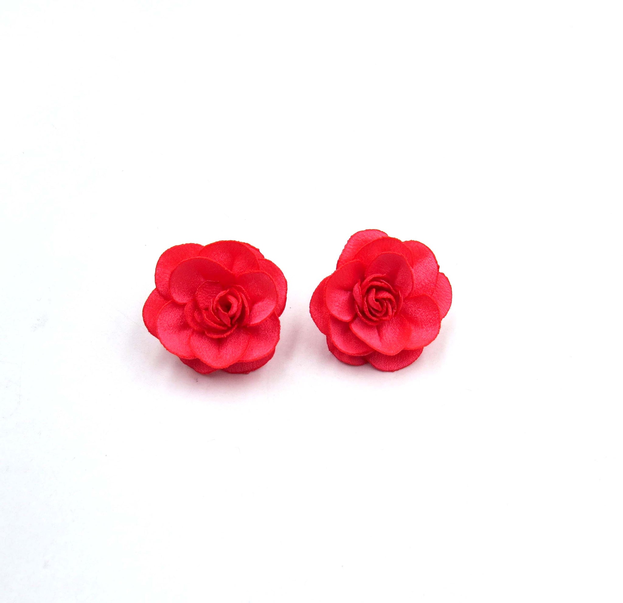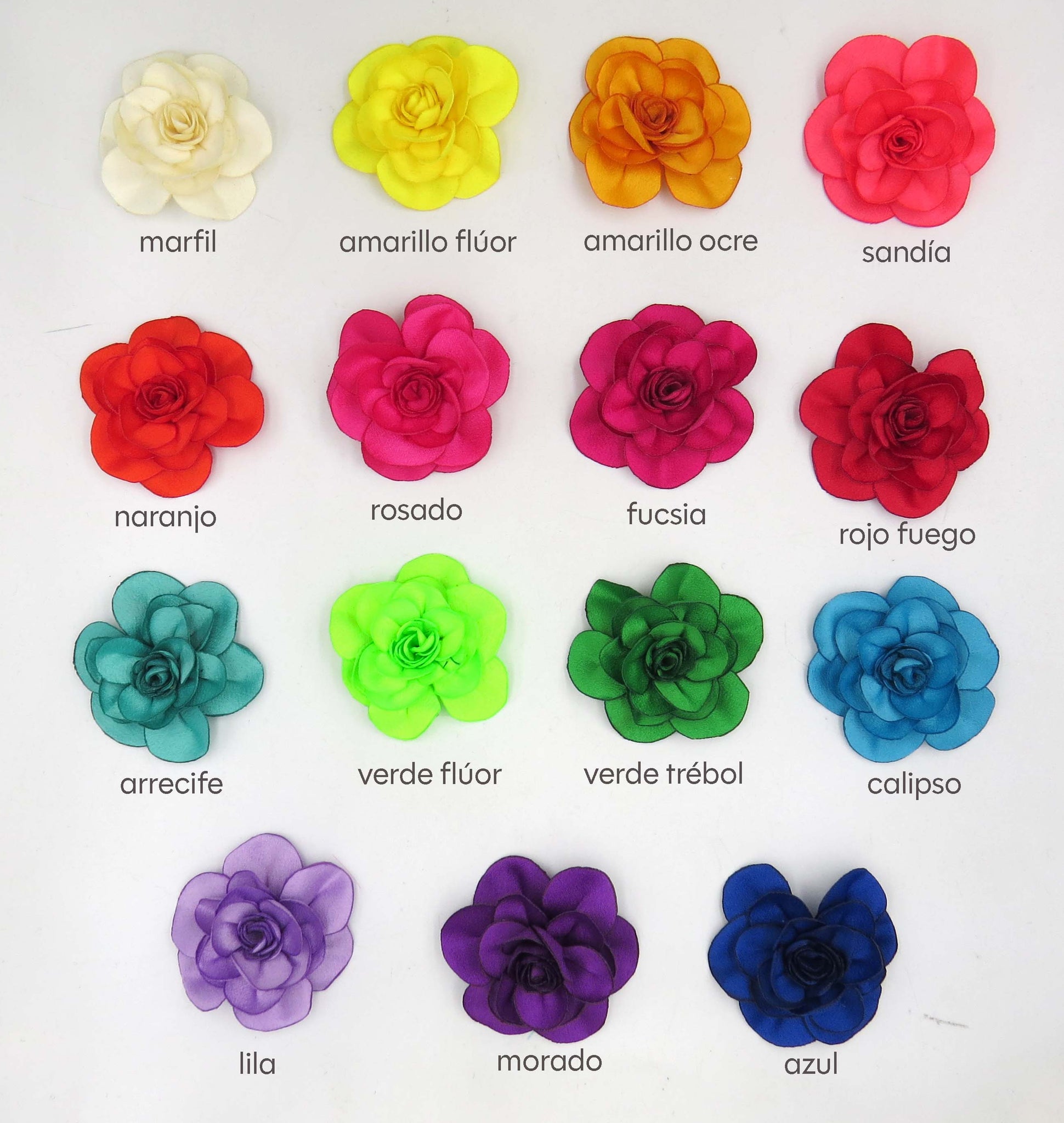Flores de crepé piel de ángel (seda acrílica) 3 cm de diámetro aproximadamente. Pasador de plata.